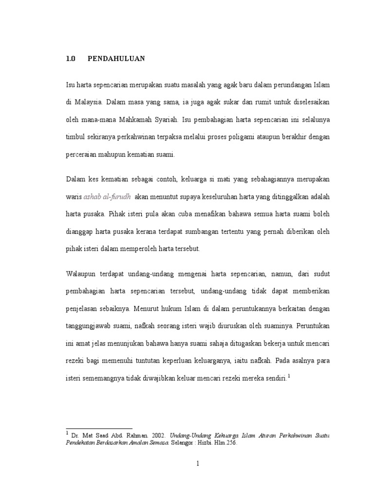 Pembahagian Harta Sepencarian Dalam Poligami Menurut Undang Undang Keluarga Islam As Salihin Trustee Berhad